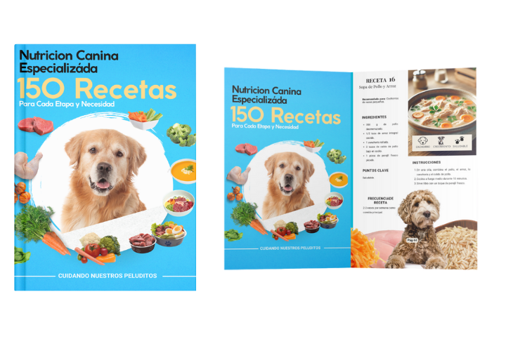 Con +450 recetas caseras, naturales y económicas, diseñadas para prevenir enfermedades comunes y reducir hasta un 50% tus gastos mensuales en croquetas y visitas a la veterinaria.